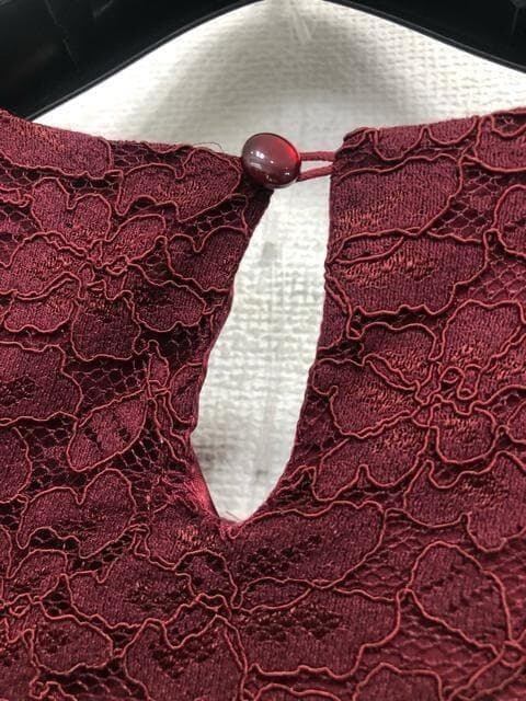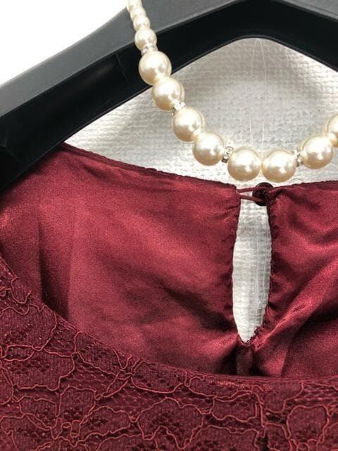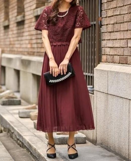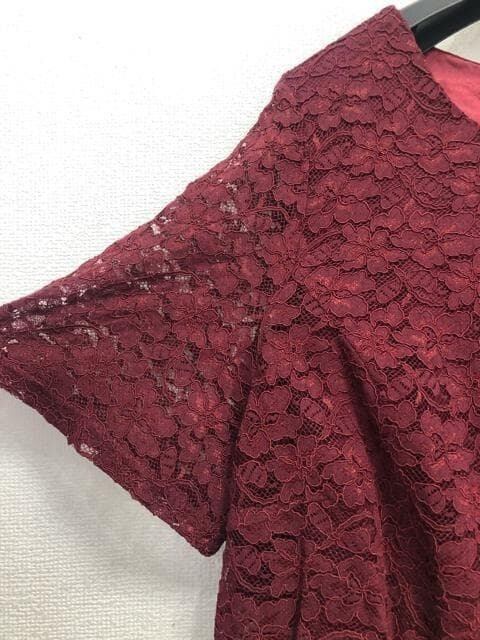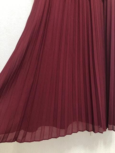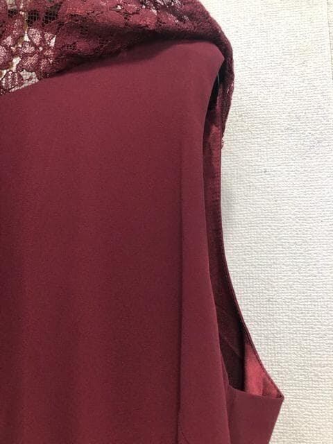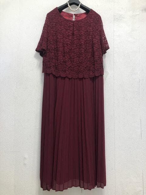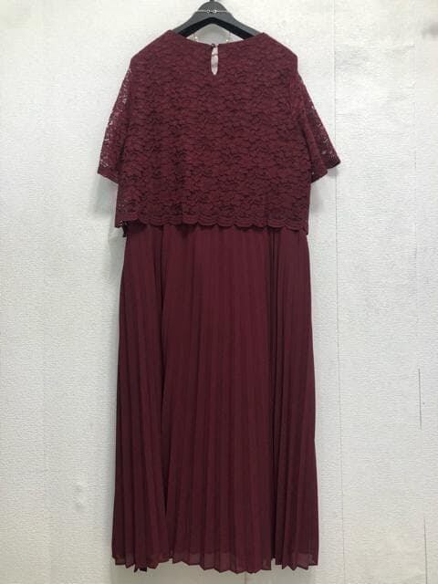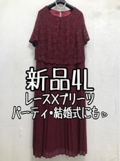 新品☆4L♪ボルドー系♪プリーツ&上品レースきれいワンピースドレス☆☆Q585