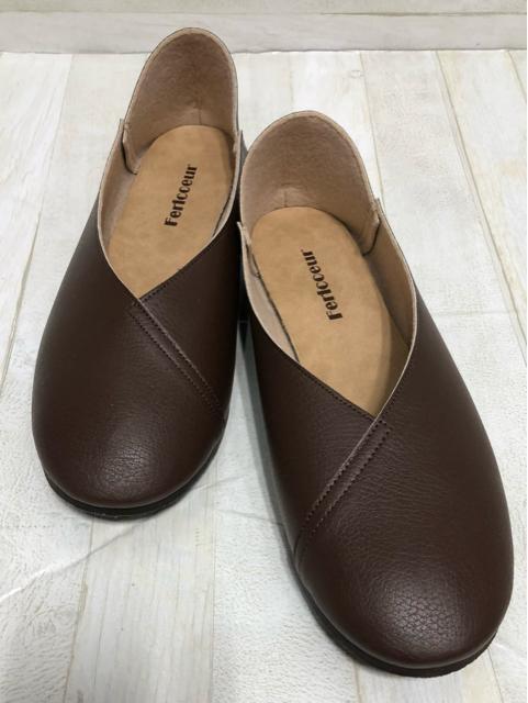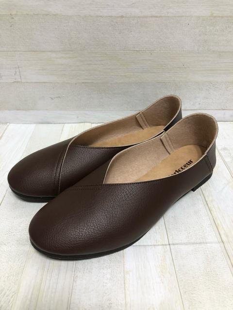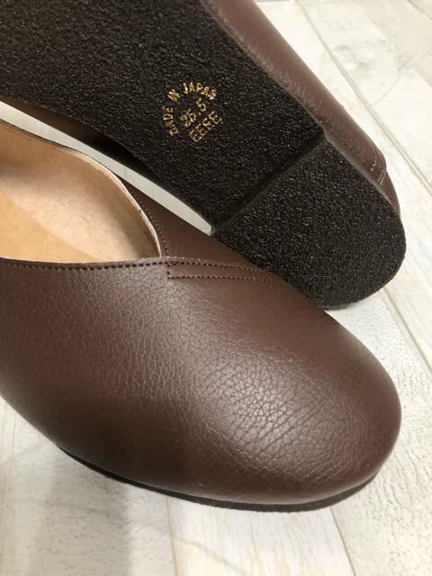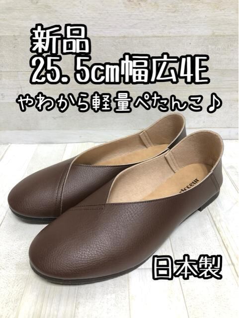 新品☆25.5cm幅広4E♪茶系♪日本製ぺたんこパンプス軽量やわらか☆Q606