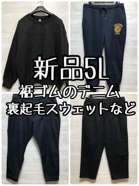 新品☆5L♪裾ゴムデニム・裏起毛トレーナー・スウェットパンツなど♪☆Q598