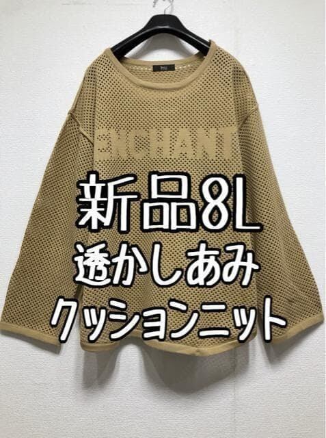 新品☆8L♪ベージュ系♪ロゴ入り♪透かし編みクッションニット☆w314