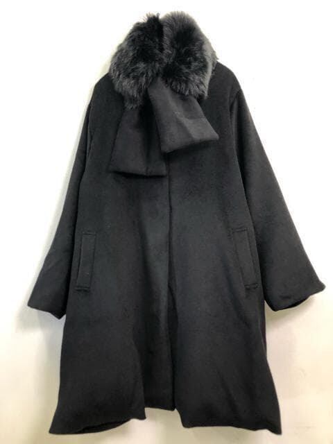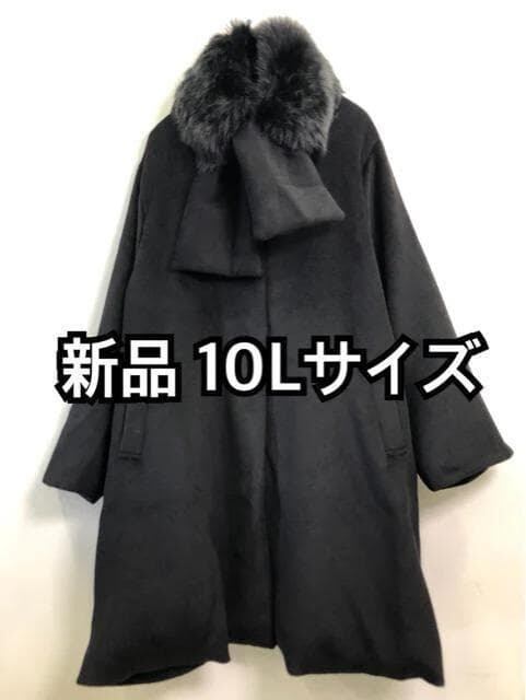 新品☆10L♪黒系♪ファーマフラー付きよそ行きロングコート☆f242