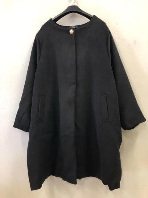 ノーカラーのロングコートです♪
