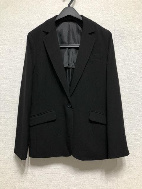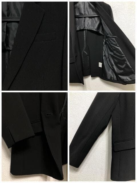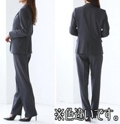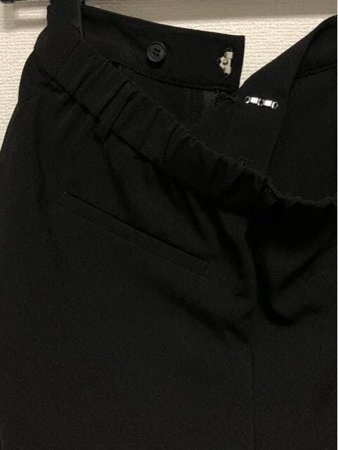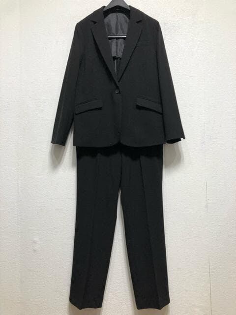 新品☆Lストレートパンツスーツ黒無地ストレッチお仕事フォーマル☆Q631