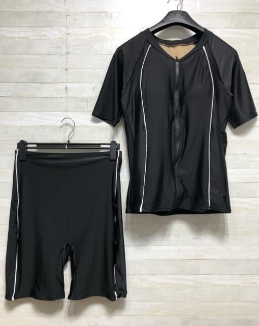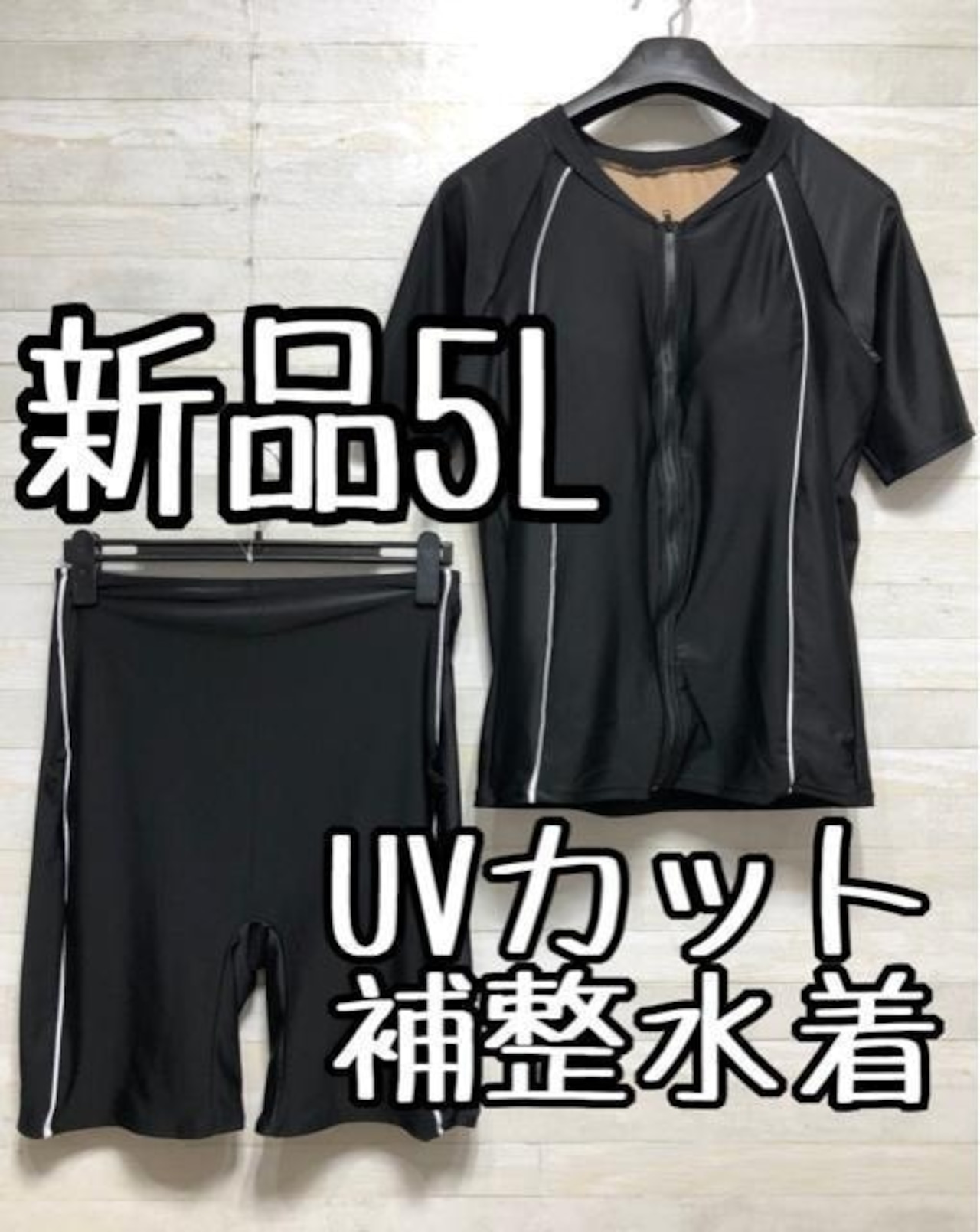 新品☆5L♪黒系♪セパレート補整水着♪半袖♪前開き♪☆Q632