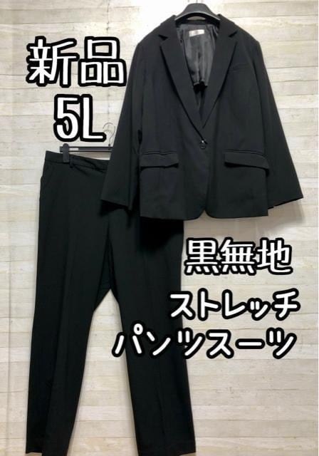 新品☆5L♪黒無地パンツスーツ♪ストレッチ♪ストレートパンツスーツ☆Q634