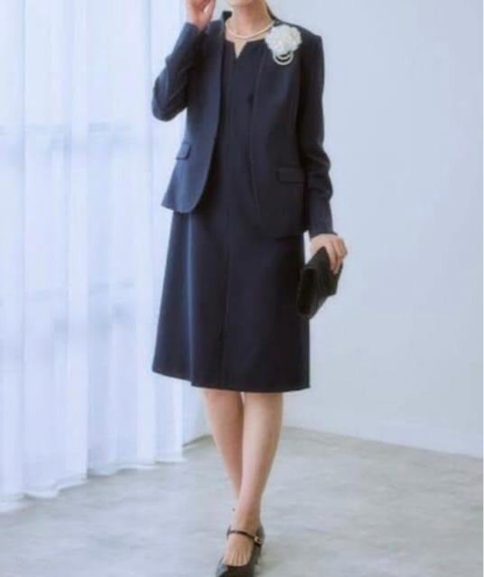 新品☆4L♪紺系ワンピーススーツ♪フォーマルにもお仕事にも16390円をR106