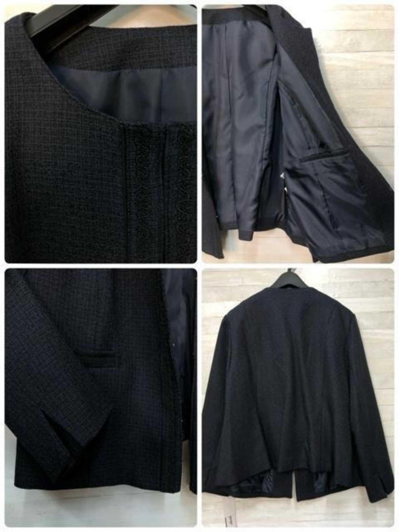 ツイード風おしゃれなノーカラージャケットと