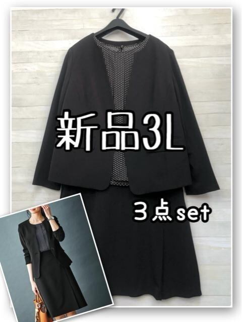 新品☆3L♪黒系スーツ3点セット♪お仕事からフォーマルまで♪ブラウス付R123