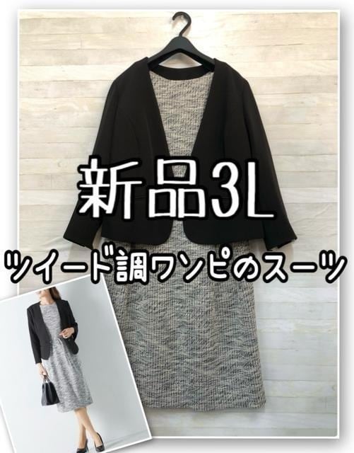 新品☆3L♪ツイードワンピーススーツ♪お仕事・フォーマル・入卒にも☆R126