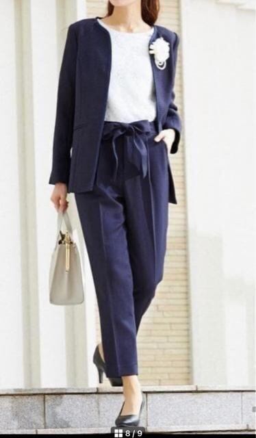すっきりした9分丈テーパードパンツスーツ