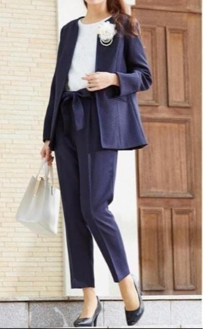 新品☆LL♪紺フォーマルからお仕事まで♪暖か裏地パンツスーツ♪☆R138