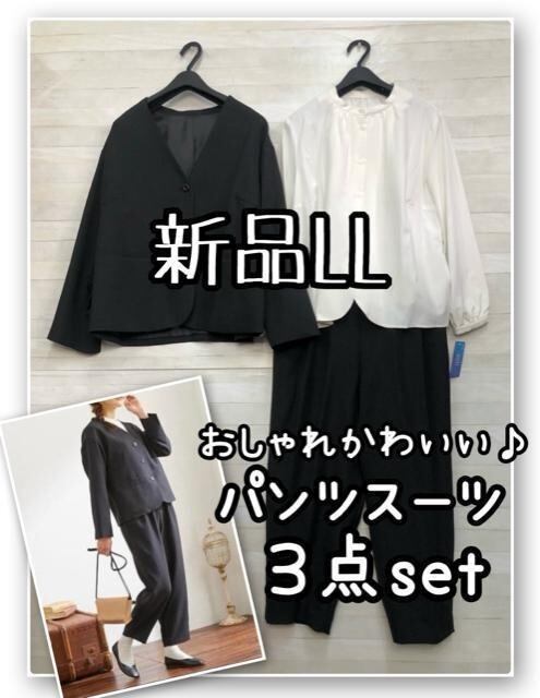 新品☆LL♪黒無地ナチュラル系おしゃれなパンツスーツ3点♪入学卒業R142