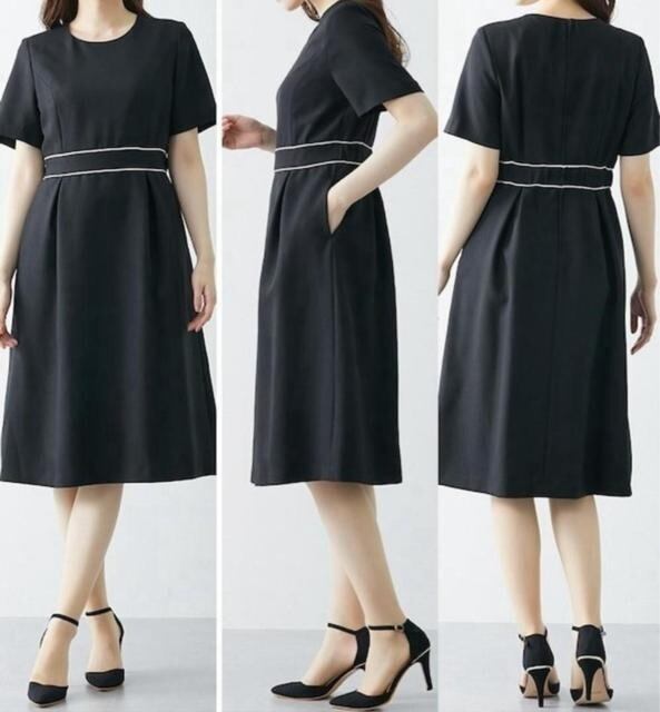 ワンピースのウエストのパイピングデザインが