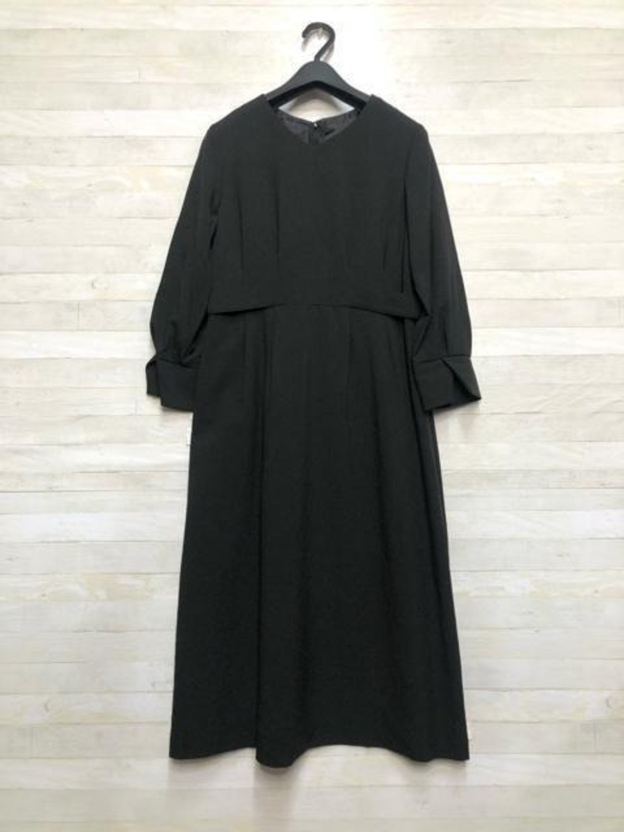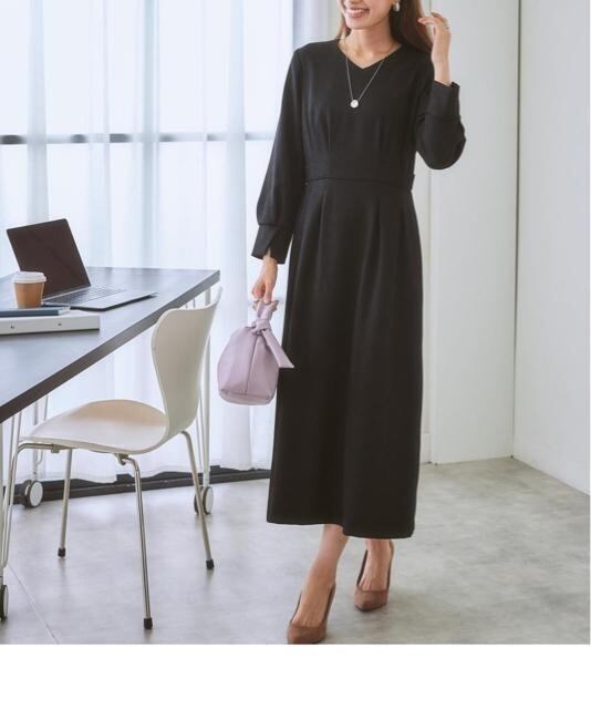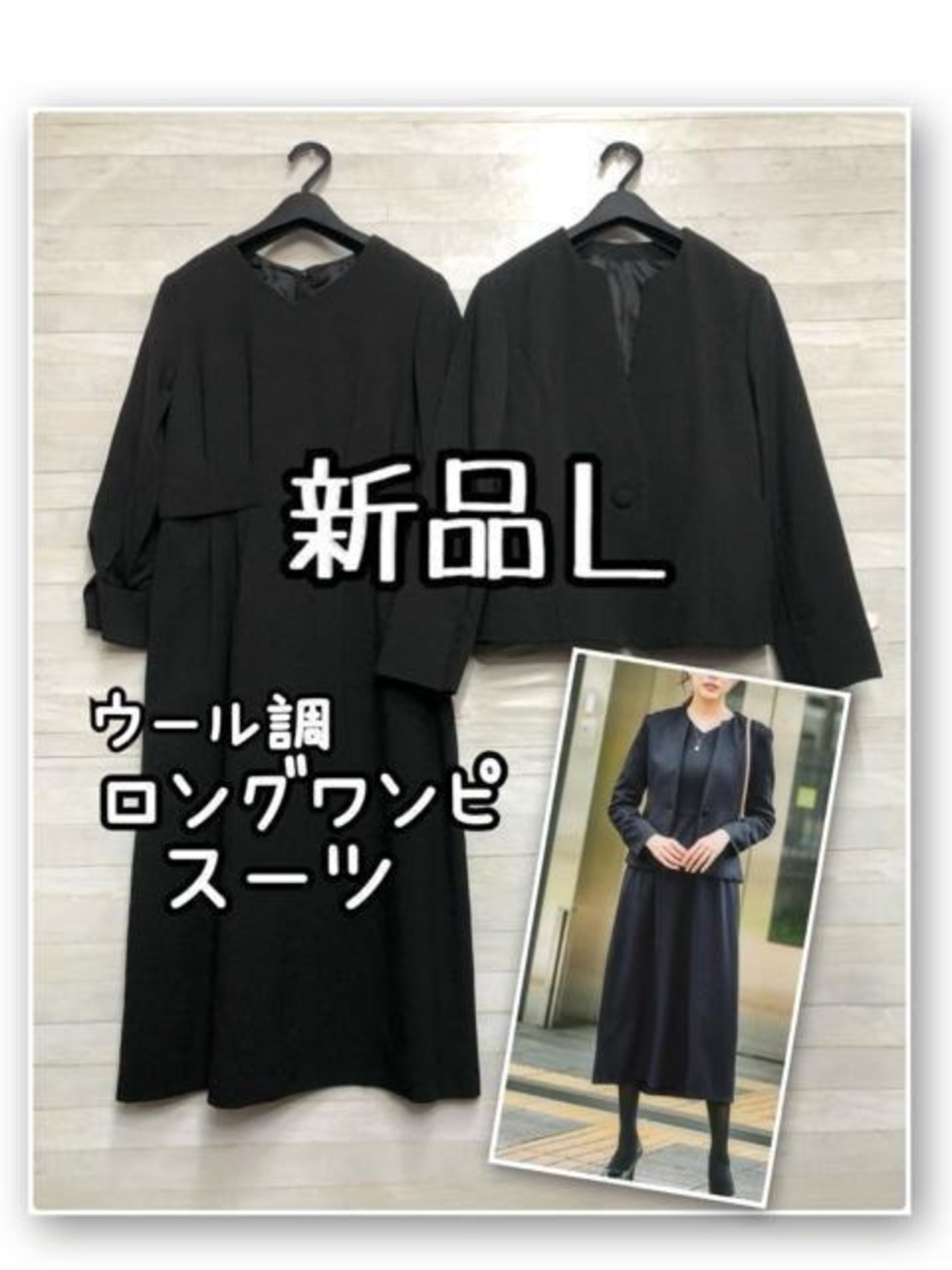 新品☆L♪黒無地ロングワンピースのスーツ♪ウール調アンサンブル☆R169