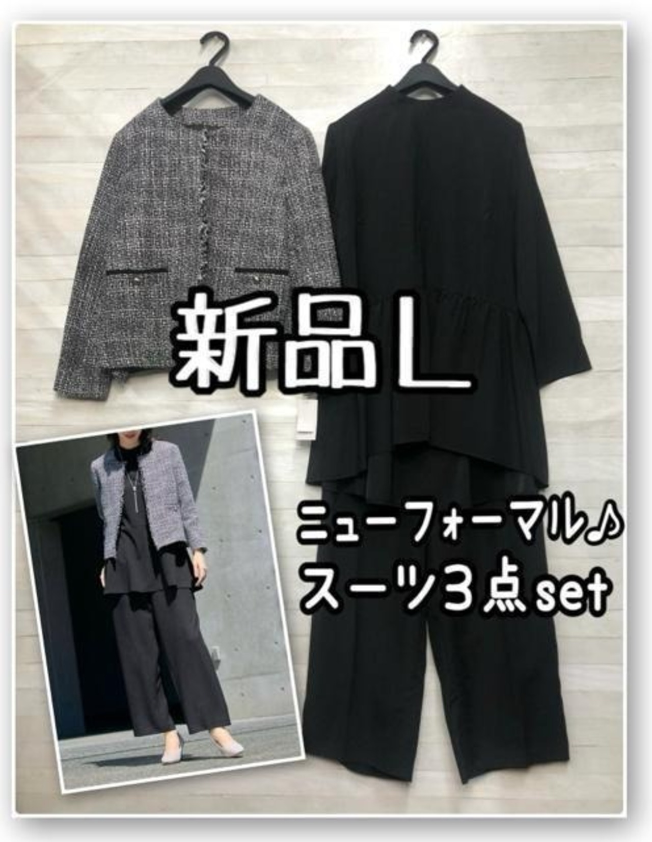 新品☆L♪黒系セレブレイトスーツ3点チュニック・パンツスーツ入卒も☆R178