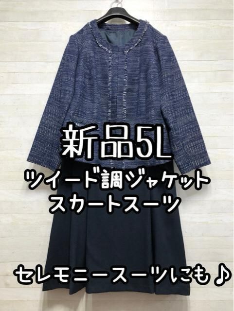 新品☆5L♪紺系ツイード調セレモニースーツ♪入学式卒業式にも♪☆R186