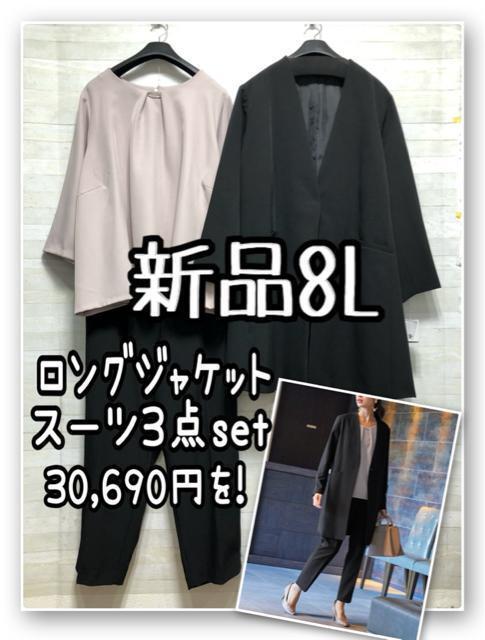 新品☆8L♪黒ロングジャケットのパンツスーツ3点セット♪30690円を♪☆R197