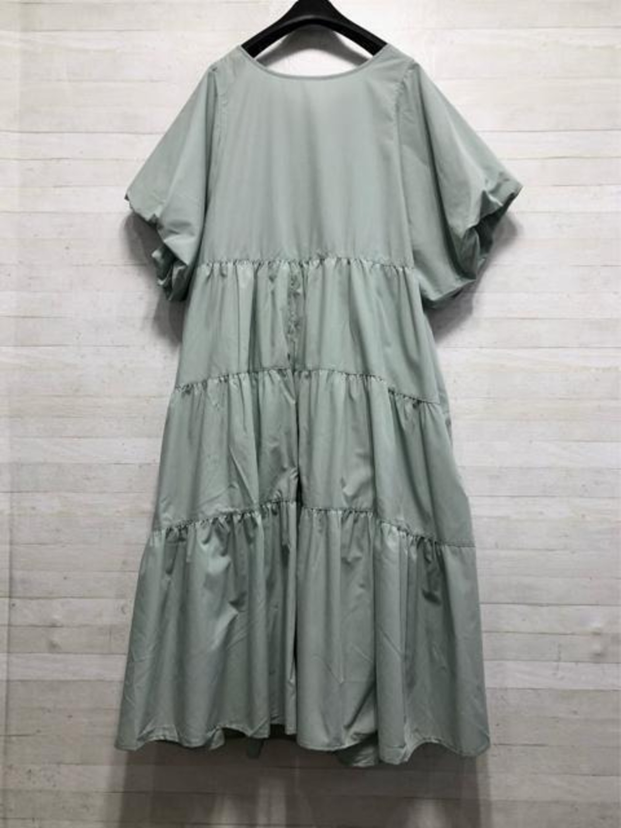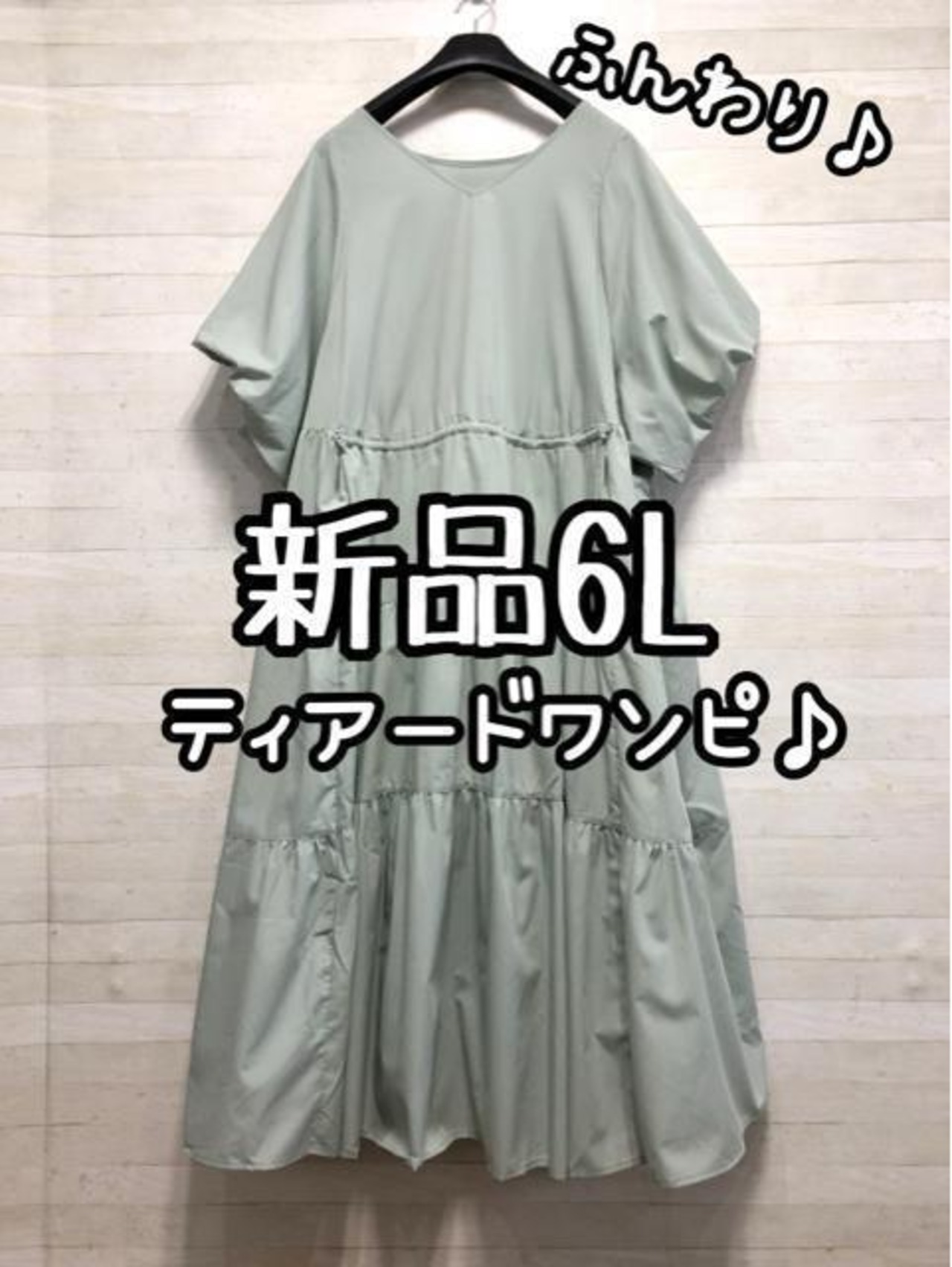 新品☆6L♪グリーン系♪フェミニンティアードワンピースふんわり♪☆Q658
