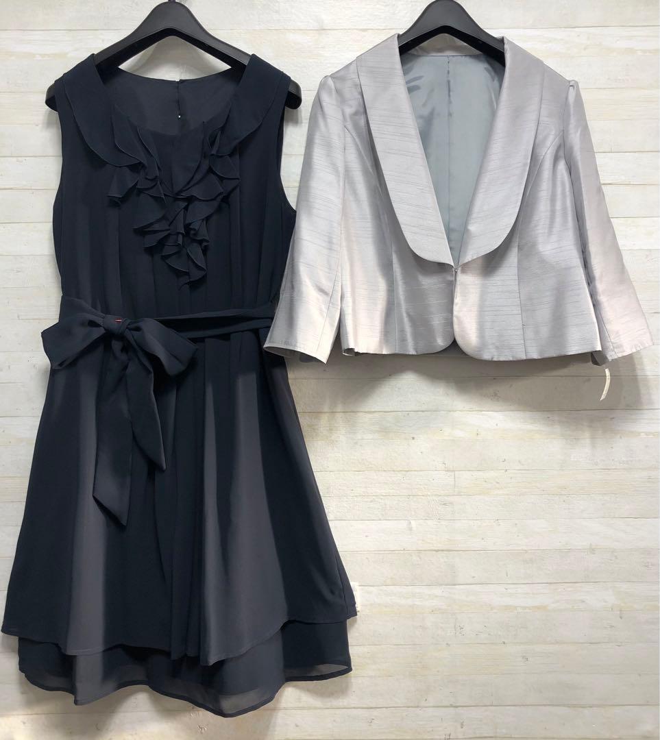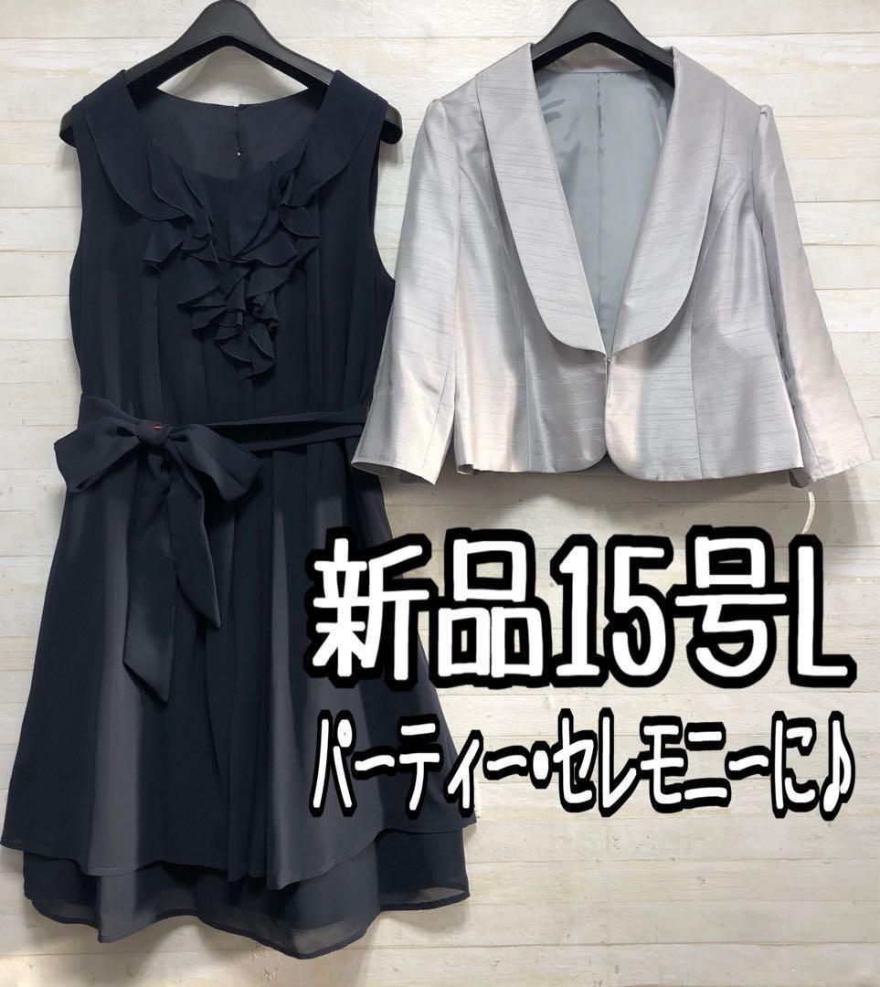 新品☆15号L♪紺系♪セレモニーにも♪ボレロ付パーティーワンピース☆Q662