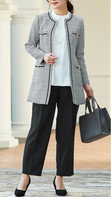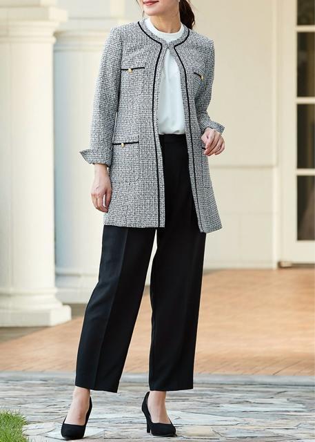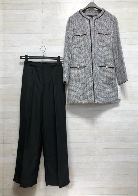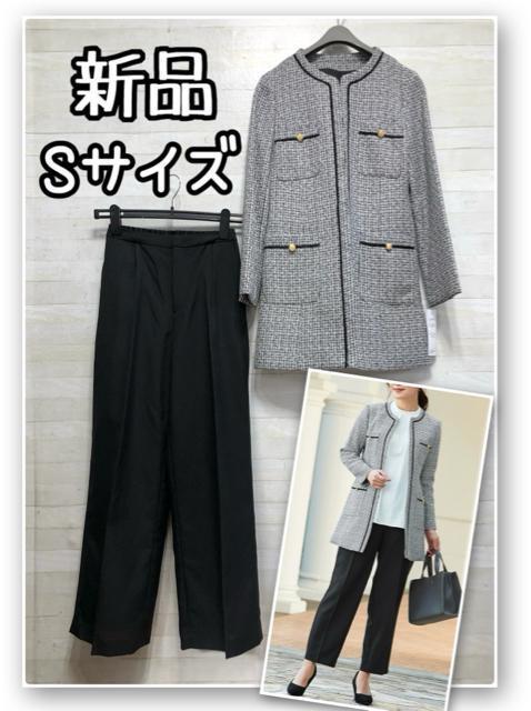 新品☆S♪ツイードロングジャケットのパンツスーツ♪セレブレイトにもR203