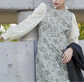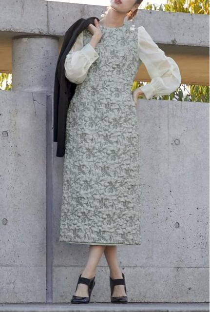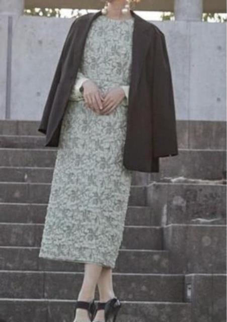 新品☆Lサイズ黒系ジャガード風ワンピースのスーツ♪27,390円を☆R218