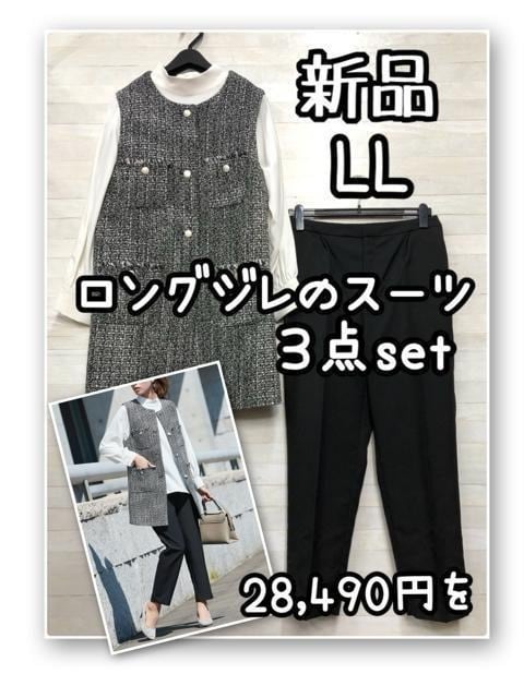 新品☆LL♪ツイード調ジレのパンツスーツ3点setセレブレイトスーツもR224