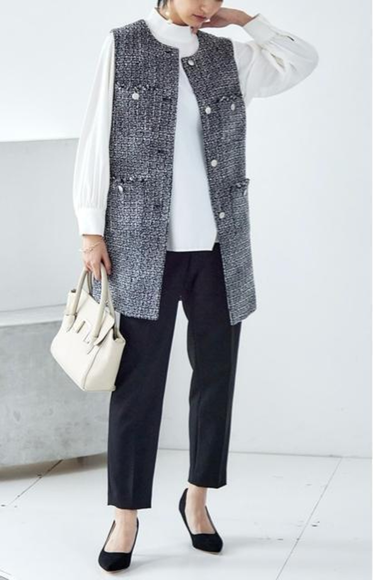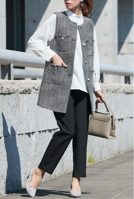 ・ツイード調ロング丈ジレ