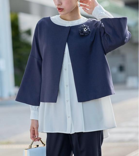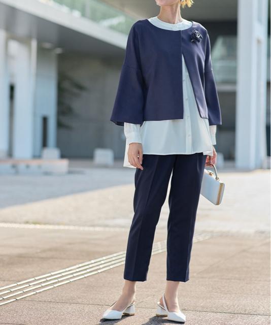 新品☆LL紺ゆったりジャケットおしゃれパンツスーツ入学式卒業式にもR226