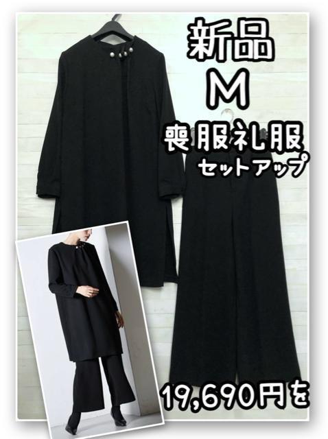 新品☆M喪服礼服セットアップ黒チュニック・ワイドパンツ19690円を☆R242