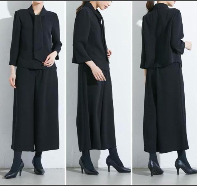 新品☆Sサイズ喪服礼服ワイドパンツのセットアップ黒おしゃれ☆R246