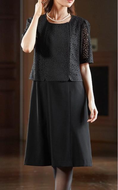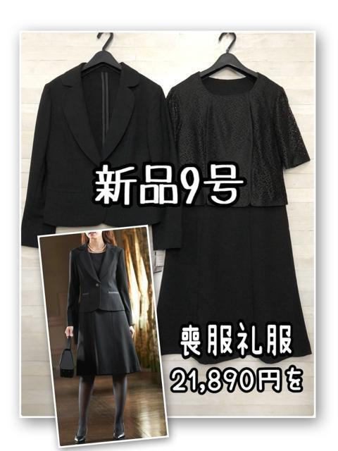 新品☆9号Mサイズ喪服礼服レースきれい黒アンサンブルスーツ訳あり☆R254
