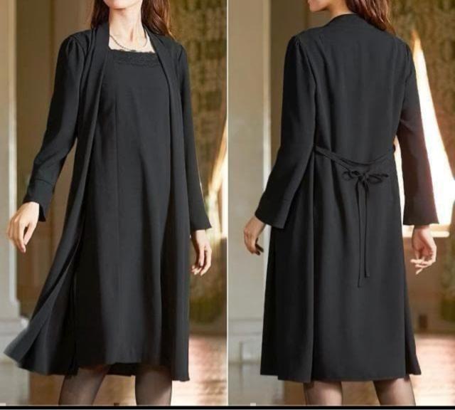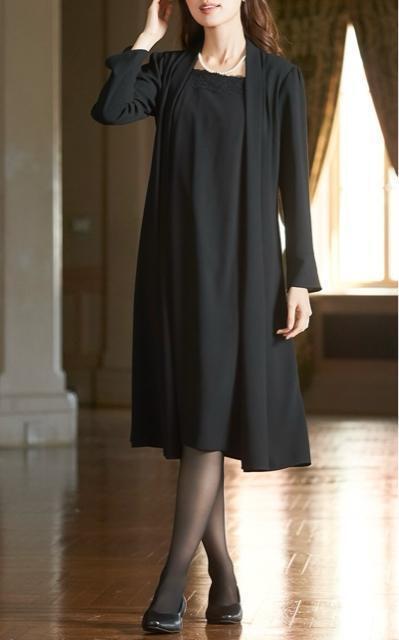 新品☆3L喪服礼服ブラックフォーマル重ね着風ワンピース19690円を☆R253