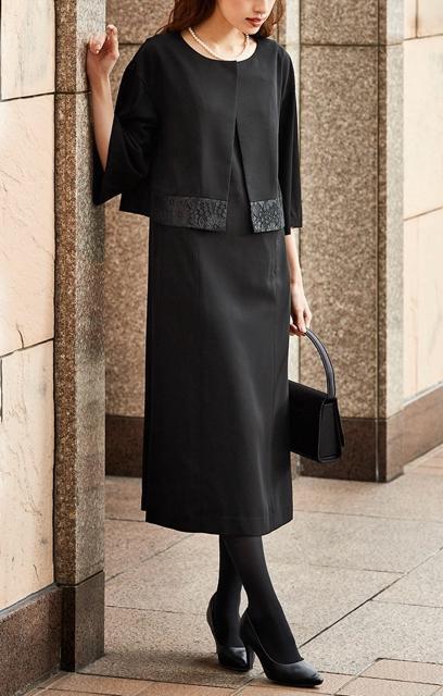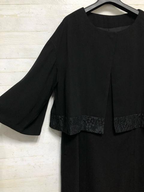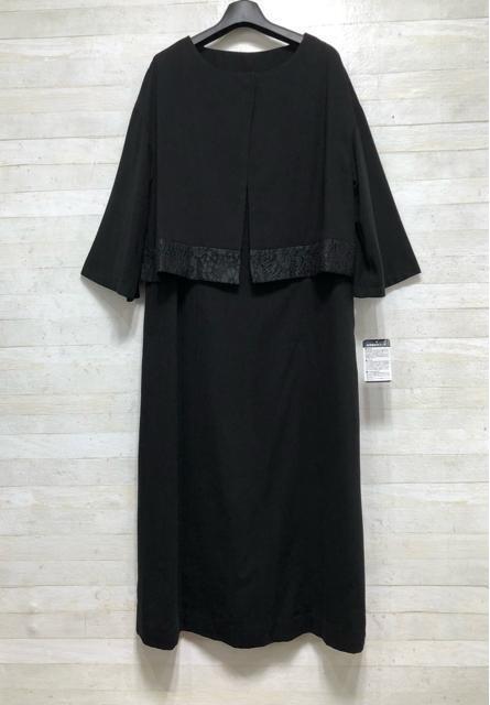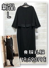新品☆Lサイズ喪服礼服スーツ風ワンピース黒7分袖19,690円を☆R256