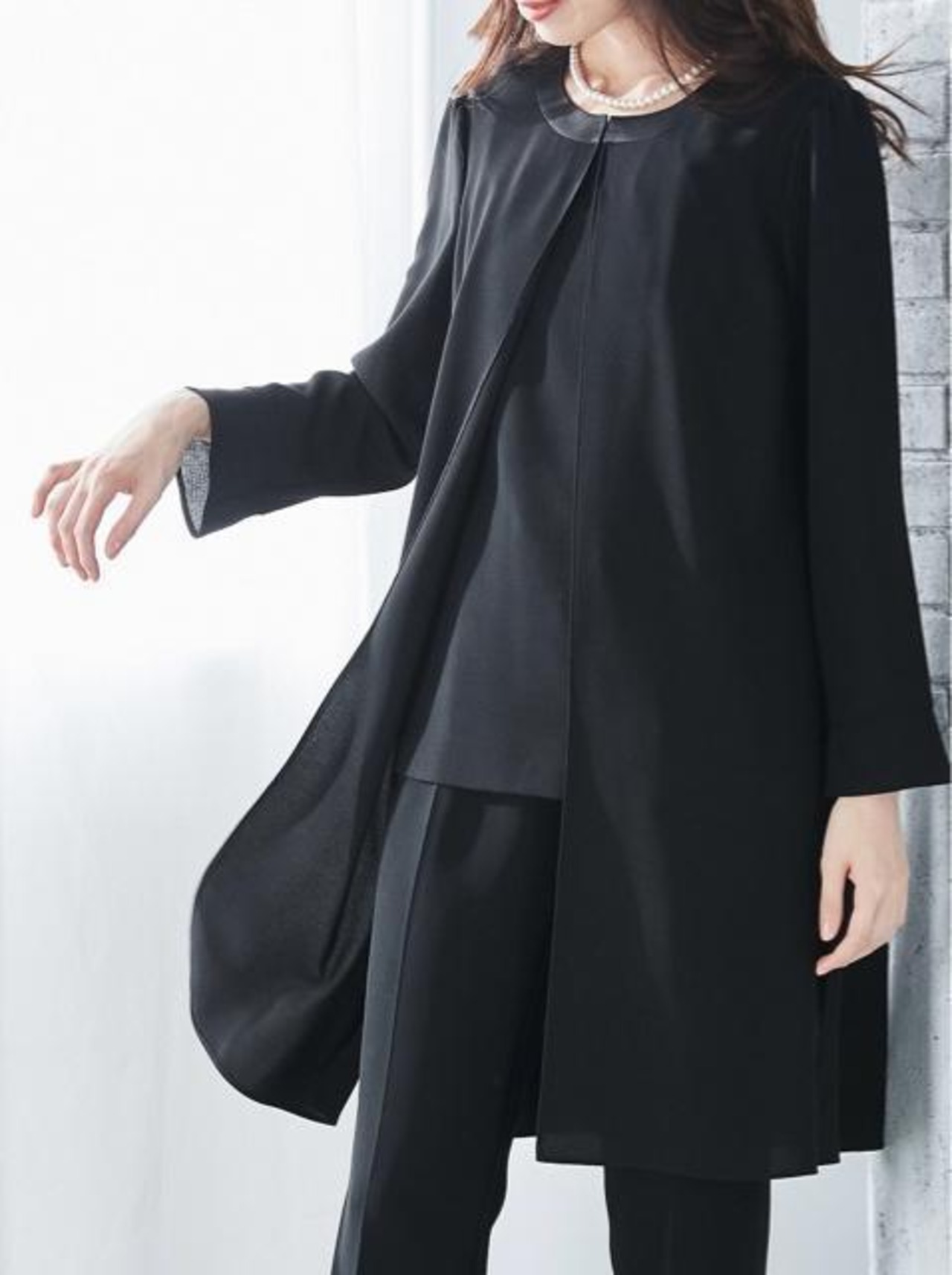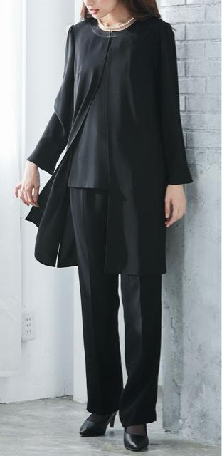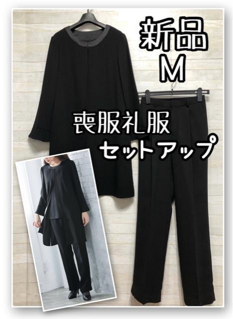 新品☆Mサイズ喪服礼服セットアップ黒アンサンブル風パンツセット☆R261
