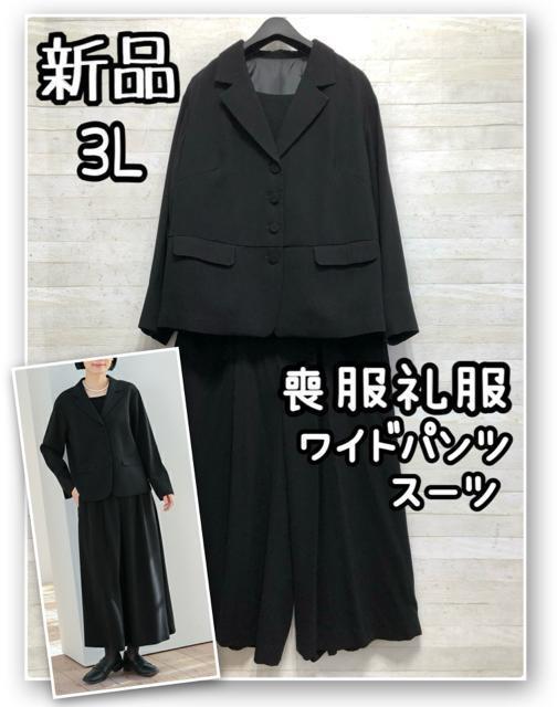 新品☆3L喪服礼服ブラックフォーマル黒ワイドパンツスーツ☆R265