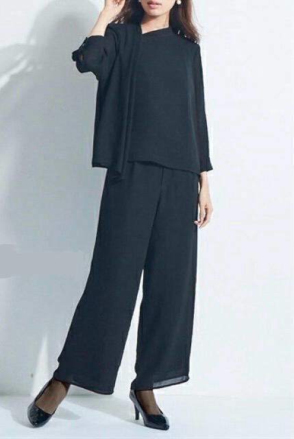 新品☆5L喪服礼服ブラックフォーマル黒ワイドパンツセットアップ☆R266
