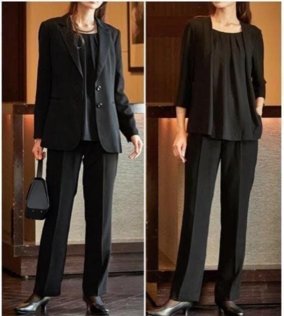 ブラックフォーマルパンツスーツ3点セット