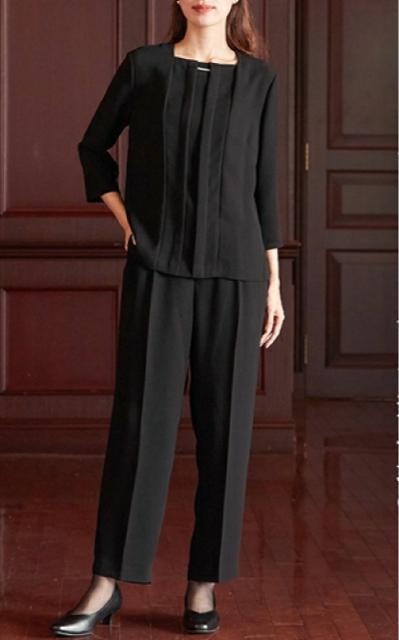 新品☆6L喪服礼服パンツスーツ3点セット体型カバー洗える28490円を☆R287