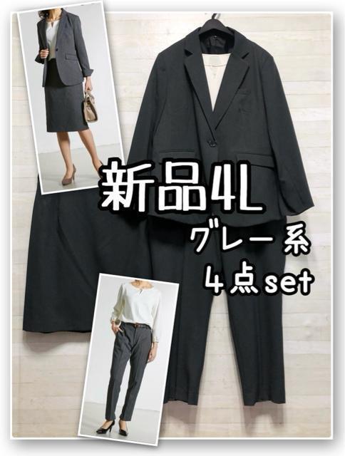新品☆4L♪グレー系スーツ4点セット♪パンツ・スカート・ブラウスも♪☆R317