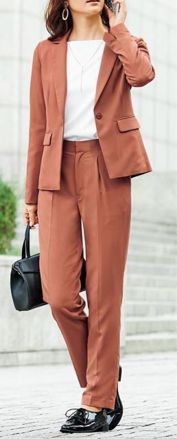 新品☆3L♪モカピンクカラー♪テーパードパンツスーツ♪オールシーズンR319
