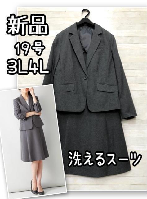 新品☆19号LL3L♪グレー系♪スカートスーツ洗えるオフィススーツ☆R324