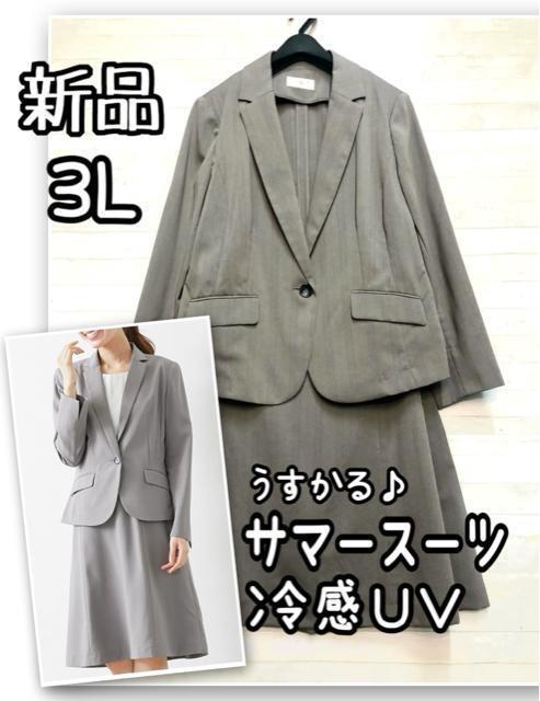 新品☆3L♪グレー系うすかるスカートスーツ♪冷感UVサマースーツ☆R330