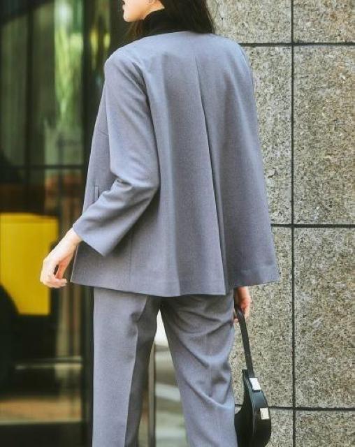 新品☆LL♪グレー系♪ゆったりノーカラーおしゃれパンツスーツ☆R341