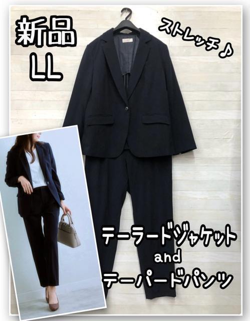 新品☆LL♪紺系♪ストレッチパンツスーツ♪テーラード&9分テーパードR342