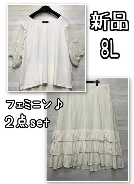 新品☆8L♪白系フリフリ♪フェミニントップス&ロングスカート♪☆f380