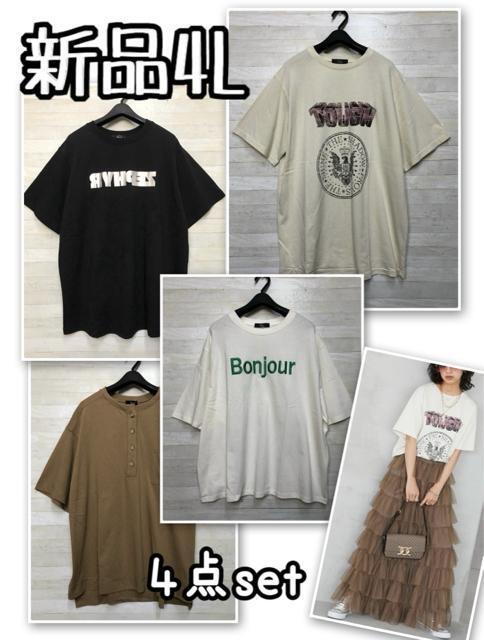 新品☆4L♪クールでおしゃれなTシャツ4枚set♪刺しゅうロゴ♪ロゴT☆x435