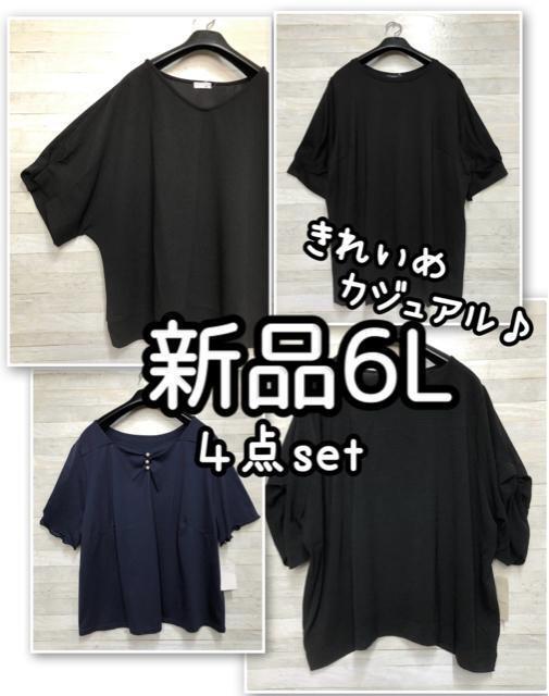 新品☆6L♪きれいめカジュアルおしゃれトップス4枚♪黒系♪ゆったりもQ675