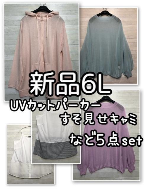 新品☆6L♪UVパーカー・裾みせキャミ・シアートップス5枚まとめて♪☆Q676