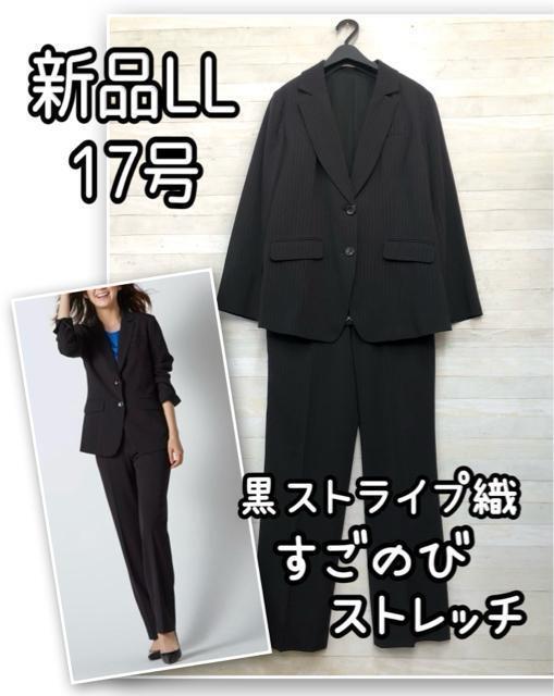 新品☆17号LL黒系♪すご伸びストレッチ♪パンツスーツ♪防汚洗える☆R348