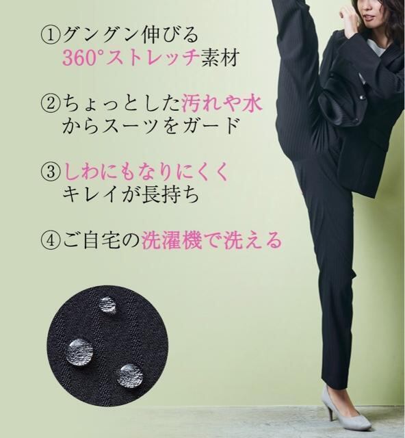 すご伸びストレッチ素材のパンツスーツ
